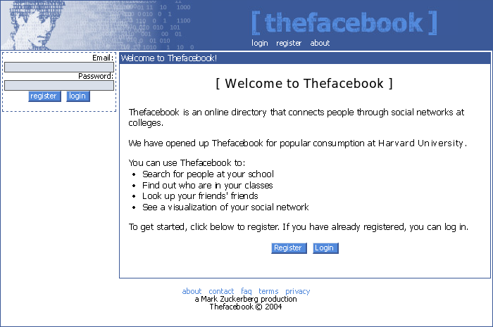 El 4 de febrero de 2004, un estudiante de la Universidad de Harvard, Mark Zuckerberg, lanza una red social llamada Thefacebook, que un año después pasa a llamarse simplemente Facebook. Fue el principio de un imperio social, que se hizo grande tras la compra de Instagram en 2012 y WhatsApp en 2014. En 2021, la empresa que agrupa las tres redes sociales, Facebook Inc., cambió el nombre a Meta Platforms.
