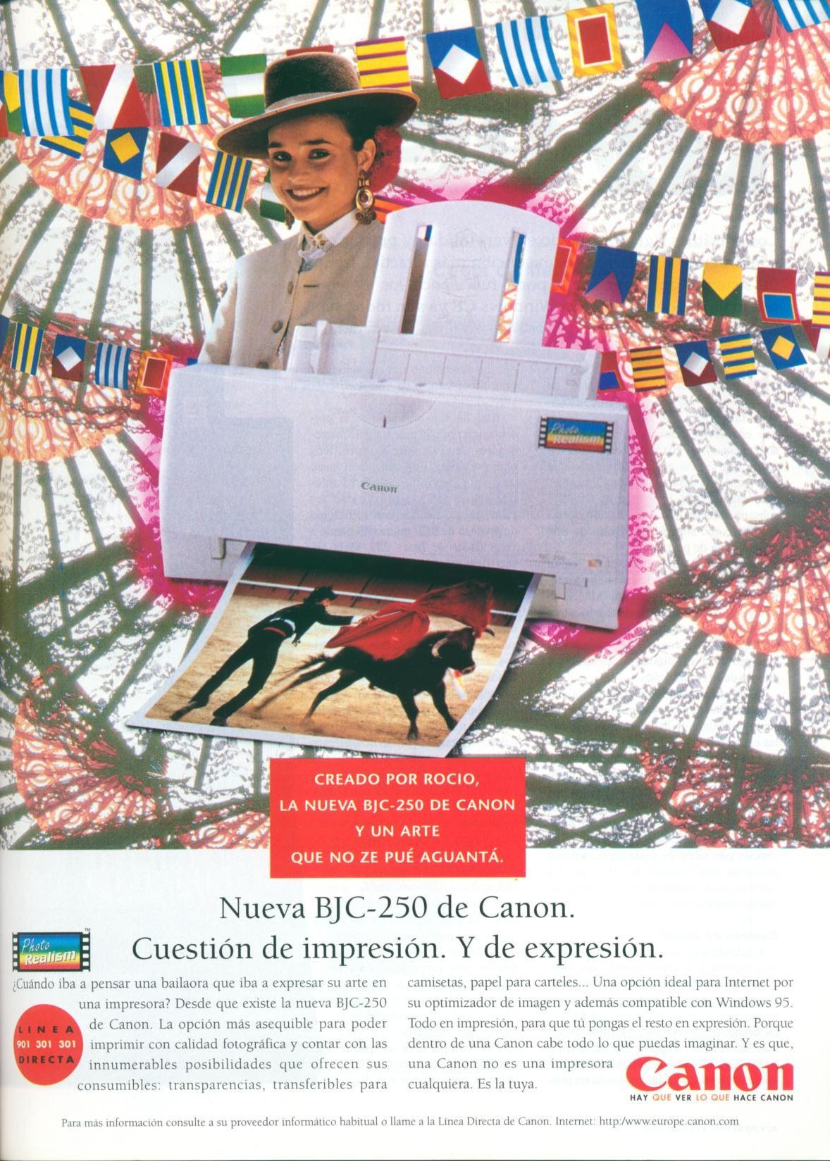 De esta forma tan folclórica anunciaba Canon su impresora BJC-250 en octubre de 1997. Extraído de la revista PC Actual.
