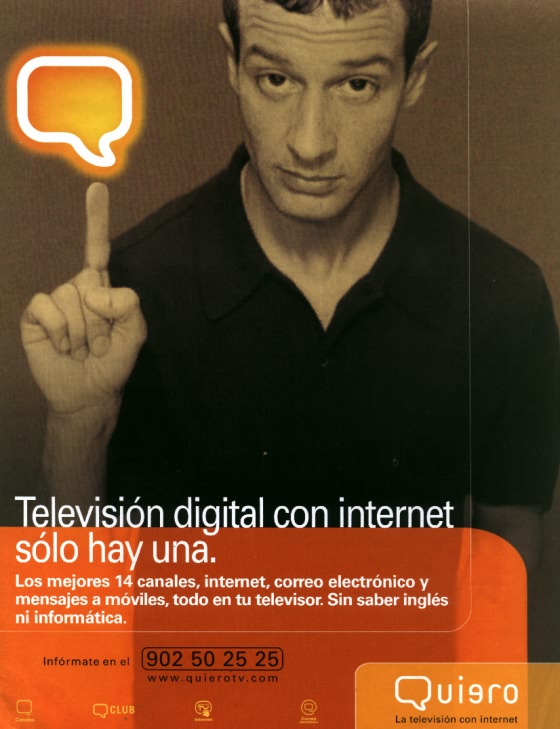 Para cumplir con este eslogan, se ofrecía un descodificador TDT con un módem interno de 56 kbps y un teclado inalámbrico para navegar por Internet con el televisor. Al finalizar Quiero TV sus emisiones el 30 de junio de 2002, muchos clientes se quedaron con el descodificador, y algunos lo aprovecharon para sintonizar los canales en abierto que empezarían a emitir a finales de 2005. Desconozco si aún se puede usar el módem interno, pero con las actuales conexiones de banda ancha no tiene mucho sentido…
