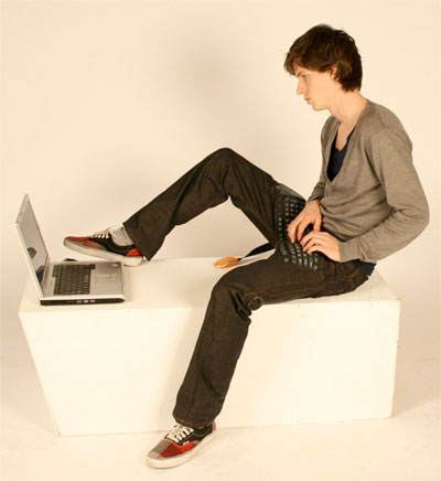 Este teclado lo podrás llevar puesto, pues está incorporado a unos pantalones que, además, tienen altavoces en las rodillas y un ratón que puedes meter en un bolsillo. Ten cuidado de no teclear demasiado fuerte…